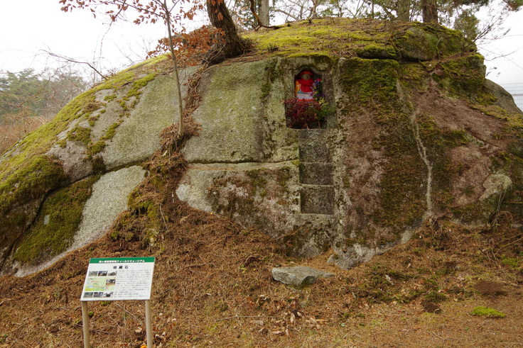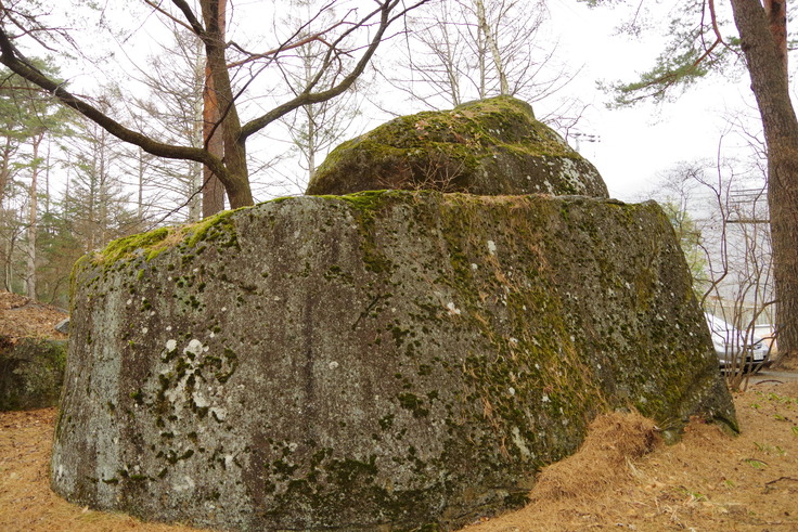 地盤の動きで直上の巨石が割れたものと考えられています。