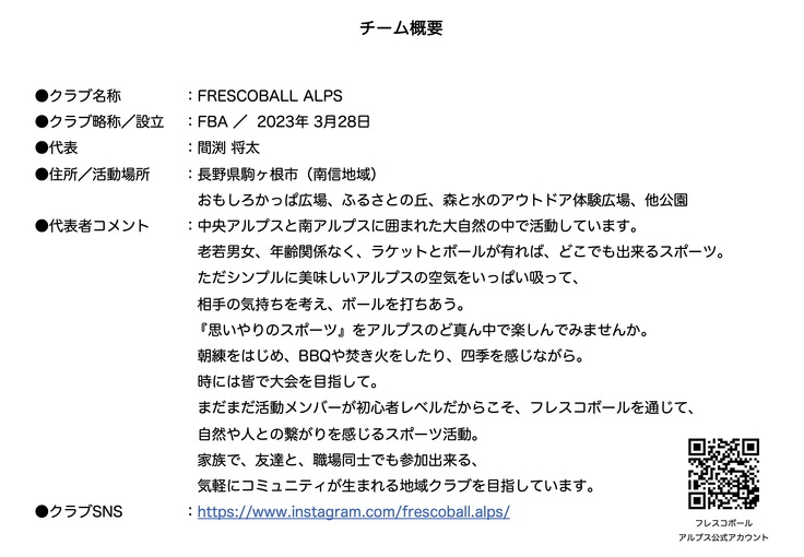 3月28日、FRESCOBALL ALPSチームを設立致しました!