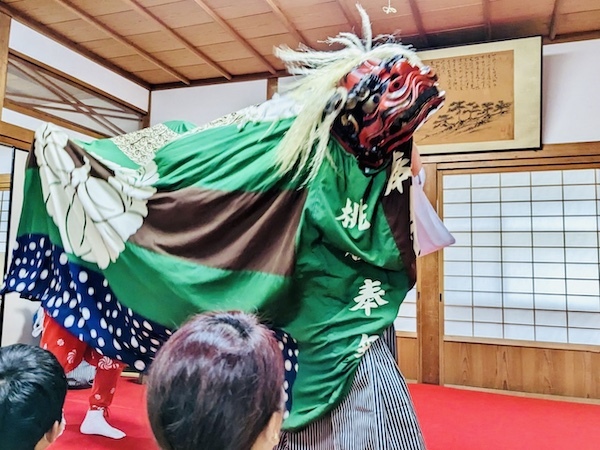 獅子舞はお祭りの時の神様の御渡りでも、先頭でその道を祓い清めます。