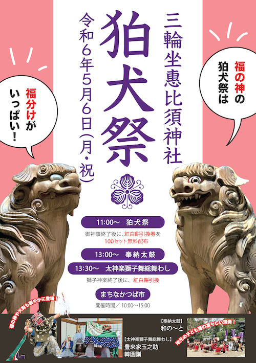 三輪坐惠比須神社様の『狛犬祭』が盛り上がり続ければ、10年後、20年後には『狛犬祭』が日本のあちらこちらで開催される日が来ると期待しています。そのためには第3回! 大成功させて下さい。