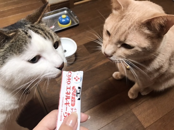 ムギが病気になってから、我が家では2匹の猫に動物病院専用の「エネルギーちゅ〜る」をあげています。