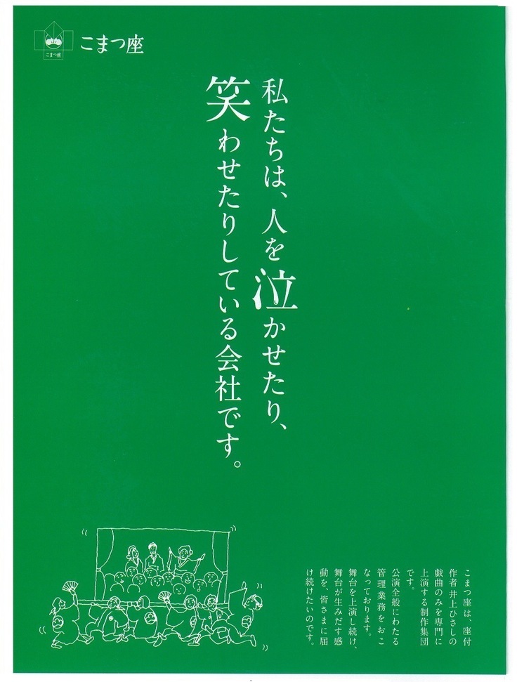 私たち「こまつ座」は、人を泣かせたり、笑わせたりしている会社です。