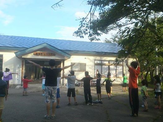 さわやかな南会津の朝。集落の子ども達と一緒にラジオ体操から始まります!