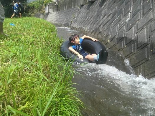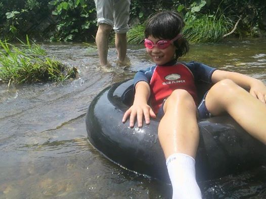 川遊びだスリー! タイヤチューブで後ろ向きにくだるのだ!