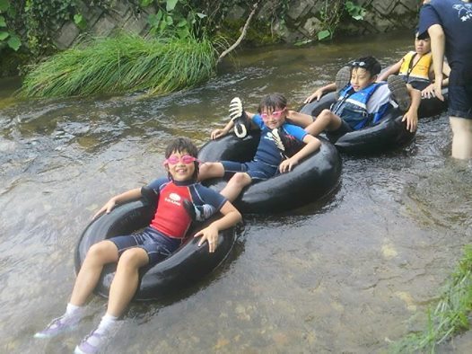 川遊びだファイブ! タイヤチューブを連結だーーー。