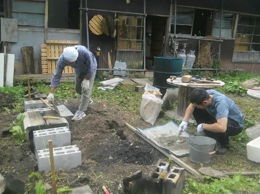 今朝から続いたドラム缶風呂の 基礎改修工事。