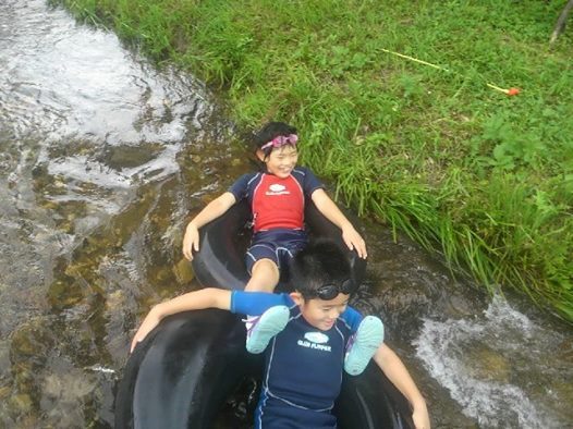水は冷たく、水量もちょっと少なめでタイヤチューブを使っての川下りも