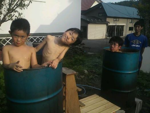 夕方は、スタッフの方が直してくれたドラム缶風呂を満喫。
