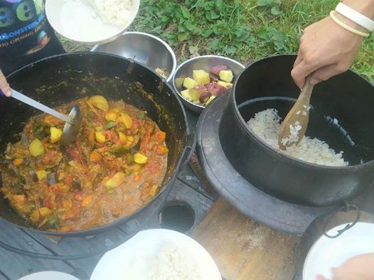 子ども達が作ったゴロゴロ野菜たっぷりのカレーライスを外で食べました。