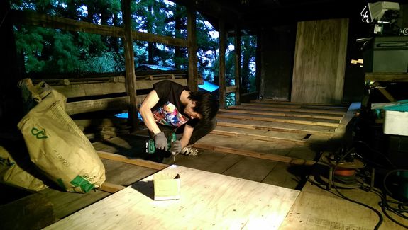 明日は、古民家から出てきた昔つかっていた窓、木材などをすべて整理して、床を張り終える予定です!