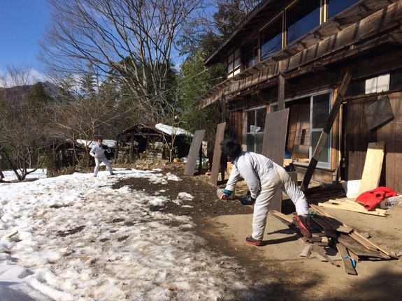 今日は作業の合間にキャッチボールをしたり、文子さんのお宅で