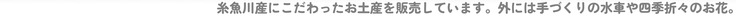 また、よってきないや館のある早川地区では、トイレ休憩やひと休みするところ、お土産物屋さんなどもないことから、早川地区の活性化や地域のPRも込めて、早川の酒蔵の地酒や糸魚川市内の商品にこだわったジュースやお菓子の販売、そしてミニ喫茶も営業しています。