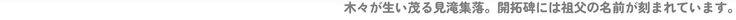 “見滝”は私の祖父が戦後、開拓団として入植し、何もない所から自分たちの手で一から生活を始めた場所であり、父の原点でもあります。(ミタキハウスの“ミタキ”はここからきています。)