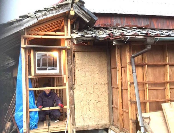 昨年末から棟梁の井口さんを中心に周りの方にボランティアで手伝ってもらっていますが、費用不足でなかなか進みません。