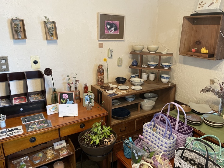 リノベーション中には河辺の探索もしました。そうすると、地元なのに今まで知らなかったことがたくさんあることに気付き、秋田市河辺の良さをみんなに知ってほしい!その思いが強くなりました。河辺、雄和は芸術の里といって陶芸家や芸術家がたくさん活動されています。その作品を展示販売したり、地元で作られた野菜や加工品を販売しようと思ったのはこの時がきっかけです。