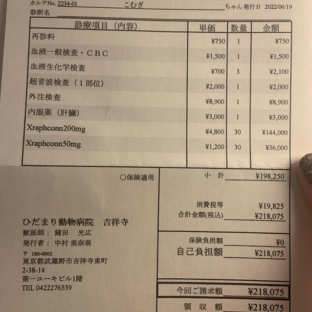 2022/6/18(土)病院・診察結果と治療費のご報告