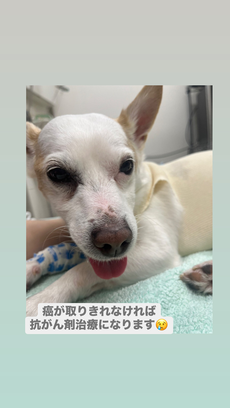 先日の手術で数個の腫瘍を切除した保護犬こぶ太。