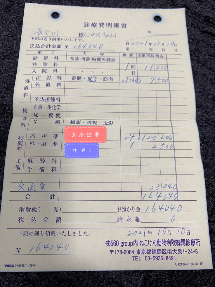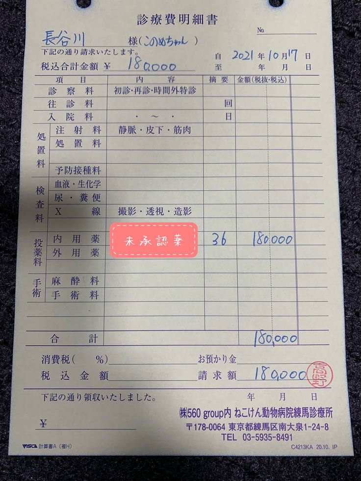 ※投薬しております薬は、国内未承認のため、未承認薬と表記しています。