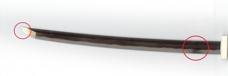 助真銘は、古備前の刀工が有名ですが、本作は備中妹尾鍛冶として香川県の有形文化財の指定を受けています。随所に現れる澄肌や、地斑映り等から、この極めに納得出来るものです。腰反り深く、先に行ってうつむき、茎の反りも深いことから、鎌倉初期にまでさかのぼる優れた品です。