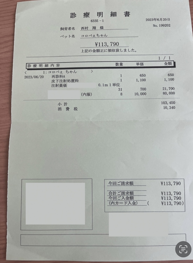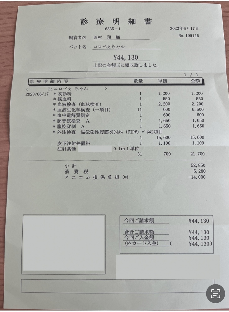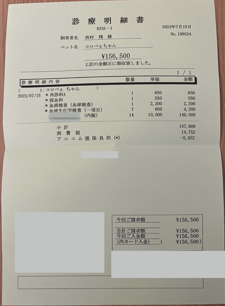 そこにさらに診察代・検査費用が数万円かかってきます。