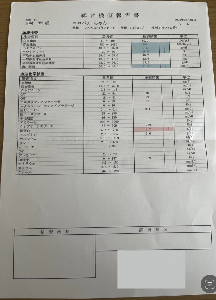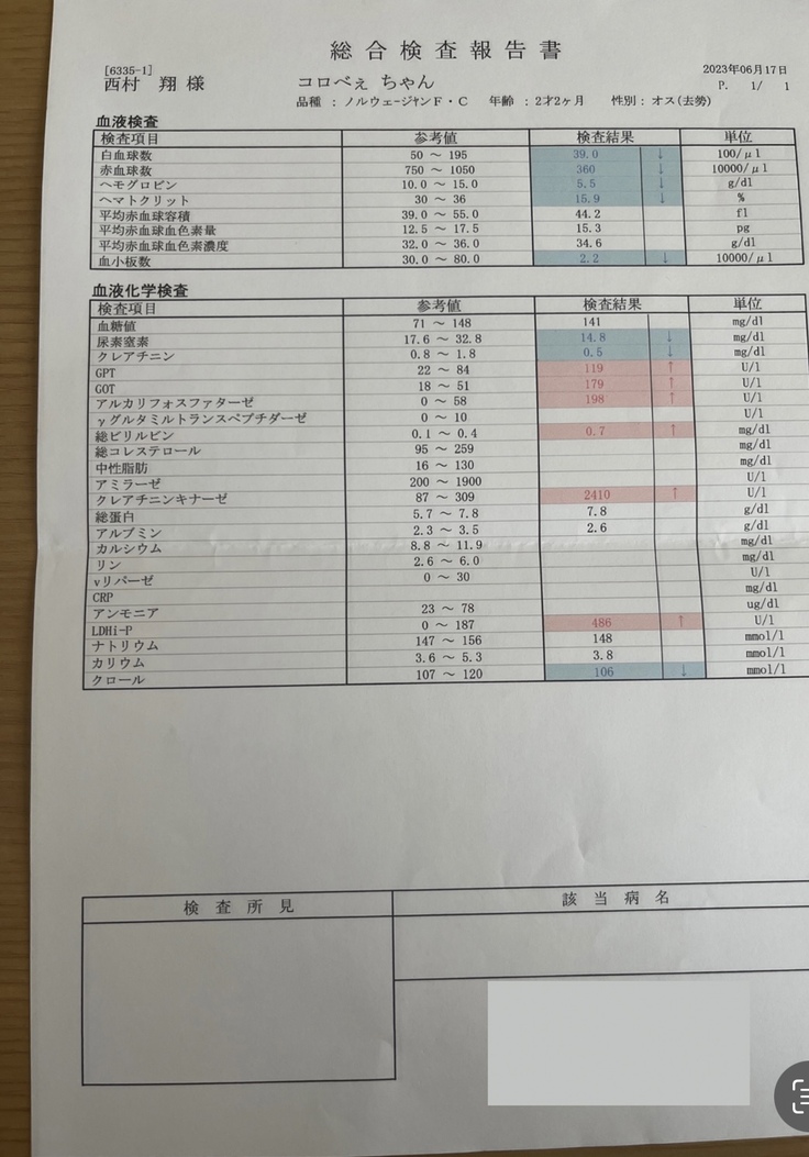 6月17日にFIP外来の病院に電話をし、すぐに来てくださいと言われたためすぐさま受診しました。