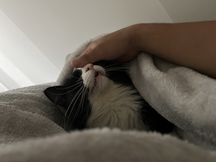 今日は人間がお昼寝中に毛布に潜り込んできたコロちゃんです。