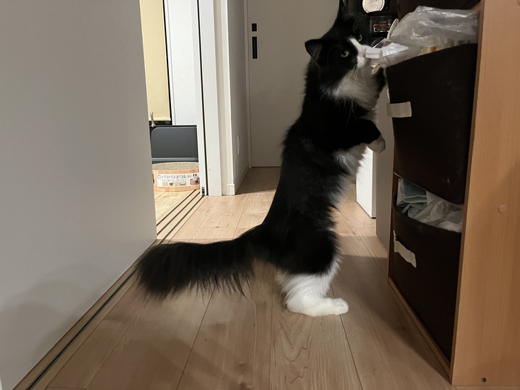 最近覚えたスーパーの袋入れを漁って好みの袋を探して散らかすという悪っぷりを発揮しています😂