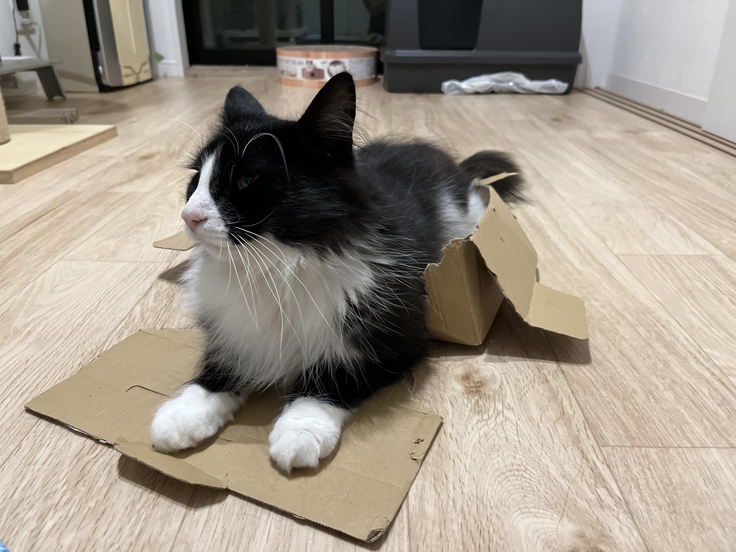今日の写真は投薬時に登場していた段ボール📦とコロちゃんです。