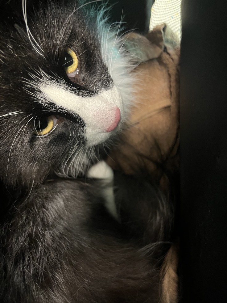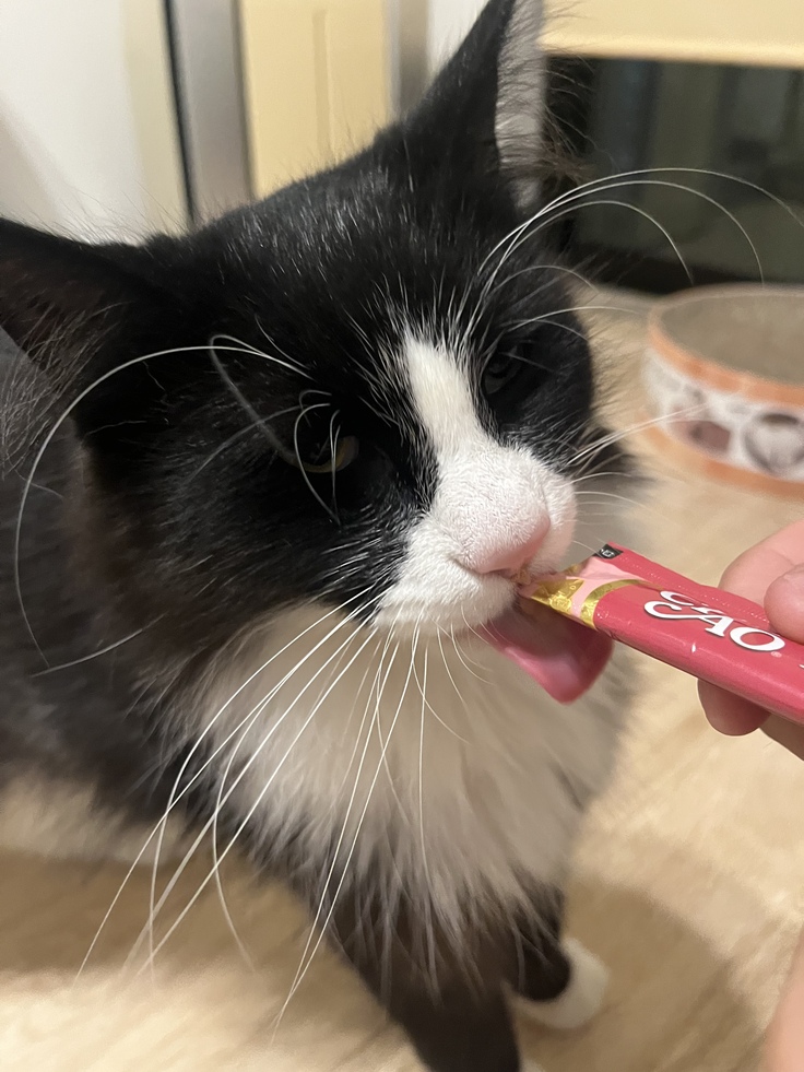 今日の写真は空箱を目敏く見つけて品定めするコロちゃんです🐈⬛🐾