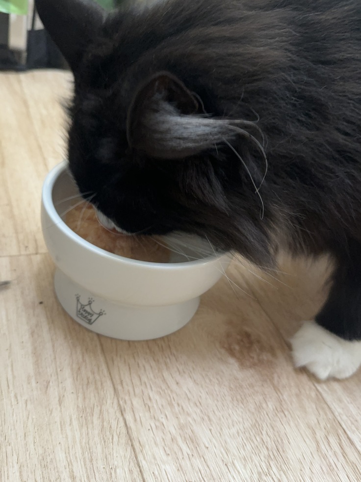 ↑去年と同じく大好きなウェットフードを誕生日祝いに食べるコロちゃん
