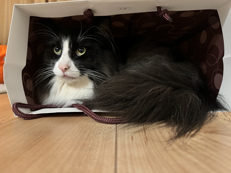 ↑紙袋に入るコロちゃん