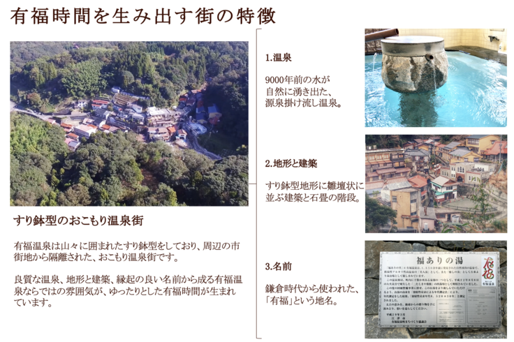 私達が感じた有福温泉の可能性を証明するという活動目的を果たすため、改めて有福温泉ならではの魅力を整理していきました。