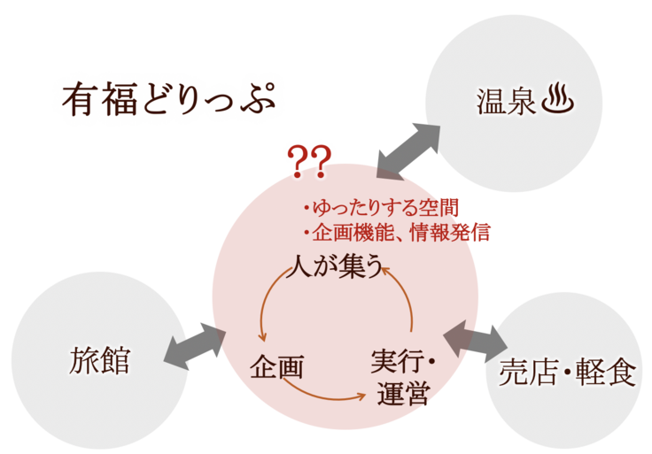 そこで私たちは、無理をして街に足りない機能を補完し幅広い方々を対象とするというよりは、有福温泉の雰囲気が好きな人、有福時間に共感していただける人に狭く深くアプローチしていく方向性でいこうと考えています。