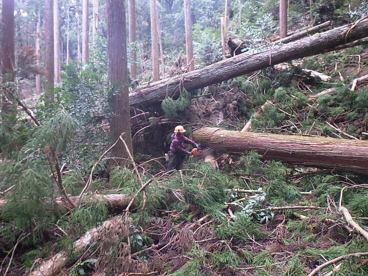 2018年9月、高山寺を直撃した台風21号。境内のスギやヒノキの大木が300本以上倒れ、金堂が半壊。鎌倉時代より伝わる石垣も多数崩壊するなど大きな被害を受けました。
