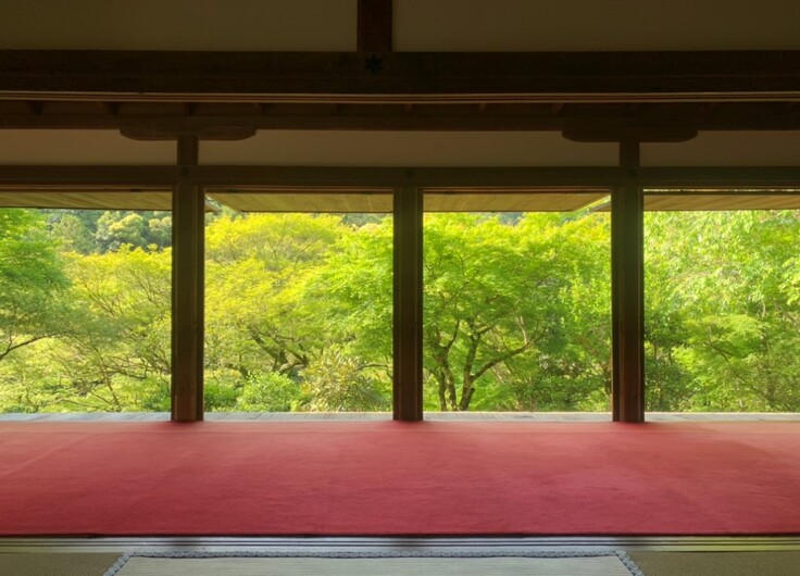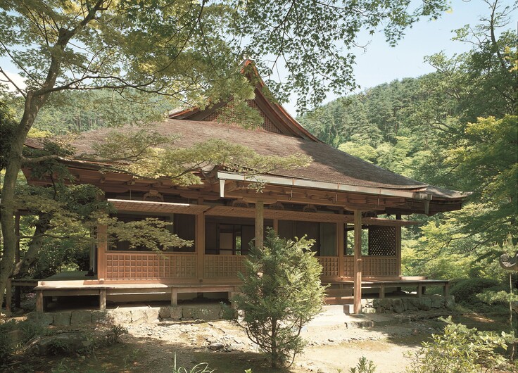 もとは経蔵兼社殿として使われ、現在は住宅風の内装に改められています。日本の伝統的な寝殿造の面影を今に伝える貴重な建造物です。吊り上げ式の蔀戸で外界と仕切られた開放的な造りが特徴となっています。周囲の自然に溶け込むように建ち、小さくやわらかな印象の石水院は、明恵上人の心が感じられる建物です。向山への景色が広がる南面の縁側は、いつまでも座っていたくなるような心地よい空間です。