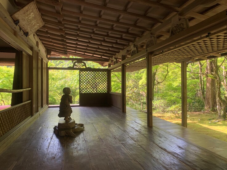 開山堂は、明恵上人示寂の地に建つお堂です。明恵上人入寂後、弟子たちにより建てられました。現在の建物は、江戸時代に再建されたもので、木材には主に栂の木が使われています。