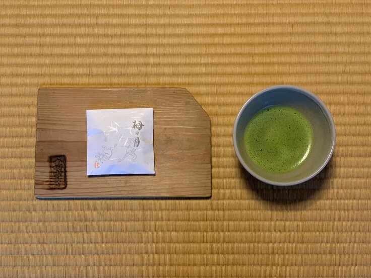 お茶ゆかりの当山では、呈茶席で「都賀乃尾」という銘のお茶をお出ししています。使うお茶碗は、釘彫りで「高山寺」と彫られた清水焼で、清水門前にある念々洞様にお作り頂いたものです。