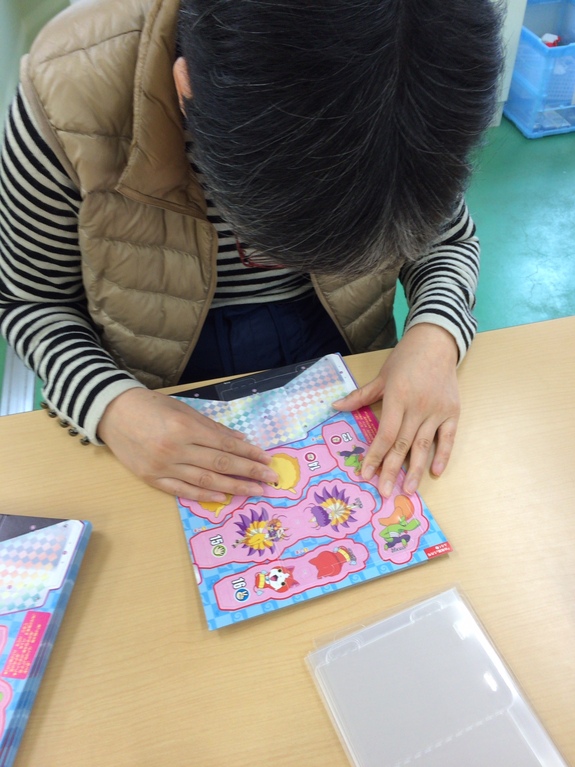 (内職作業の一つ、幼児向け雑誌の付録をセットしているところです)