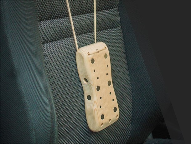 また、車のシートにも立てて使えます。長距離のドライバーには腰へのサポートを当てながら運転できます。腰まくら本体に添付されているヒモを自動車のヘッドレストに回して、引っ掛けるだけです。