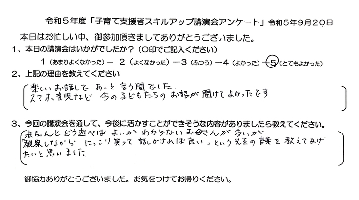 学びを通して、わが子と遊ぶポイントやこどもの育ちを捉える視点が増えたら、子育てをよりいっそう楽しむことができるように思います。