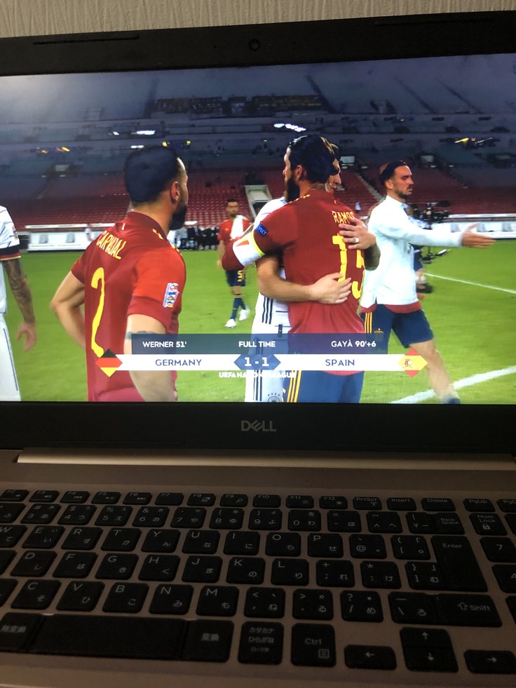 僕の注目のスペインvsドイツの試合は最後の最後までドイツが勝っていたけど、アディショナルタイムでスペインが決め1-1!