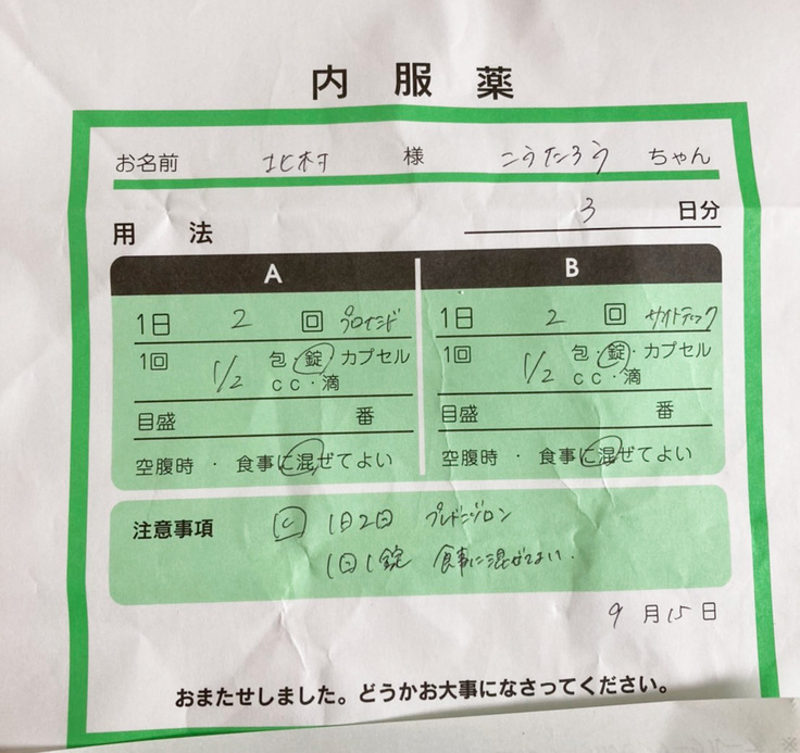 「鋼太郎」は頑張ってご飯も食べて嫌な薬も飲んでくれています。