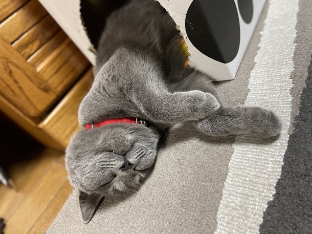 の様に箱からはみ出して寝ていました(笑)