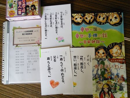はじめまして。「小学生の学びの場 キッズパーク」を主宰しております渡部と申します。福島県郡山市在住です。平成25年から、小学生を対象に、古典や論語の素読をしたり、神話についてお話したり、祝日についてお話したり、百人一首をしたり、和歌を詠んだり、お茶をたててみたり、と日本文化に親しむ時間を作り、毎月1回、主に祝日の午前に活動しております。