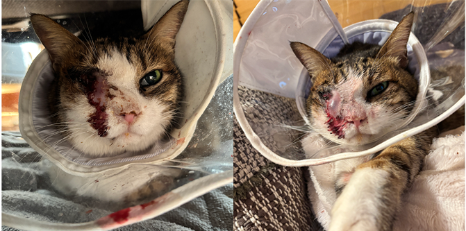 カラーを外して食事した時に痛がって逃げた際、手で擦ってしまいぼたぼたと出血。。。