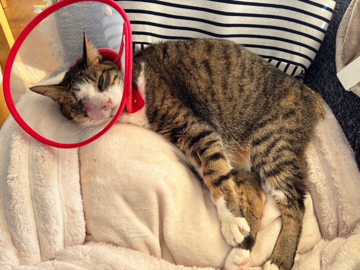 4回目の放射線治療の後、翌日はぐったりとしてほとんど動かず食べず心配しておりましたが、2日目からよく食べてくれるようになりました。
