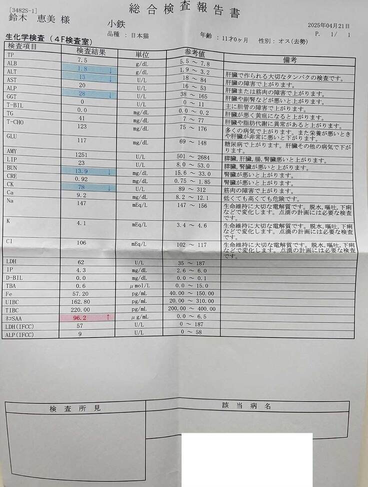 ネコSAA:炎症(癌細胞破壊中または増殖中)