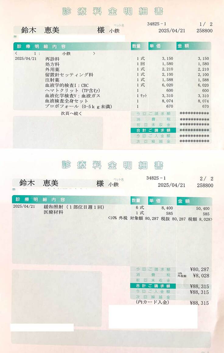小鉄は、くしゃみ連発で鼻血を出し、よだれが多くて顎の下がガビガビになり毛がぬけてきました。放射線治療の直後はほとんど食べられませんが、毎回徐々に食べるようになるので、今回も期待しています。