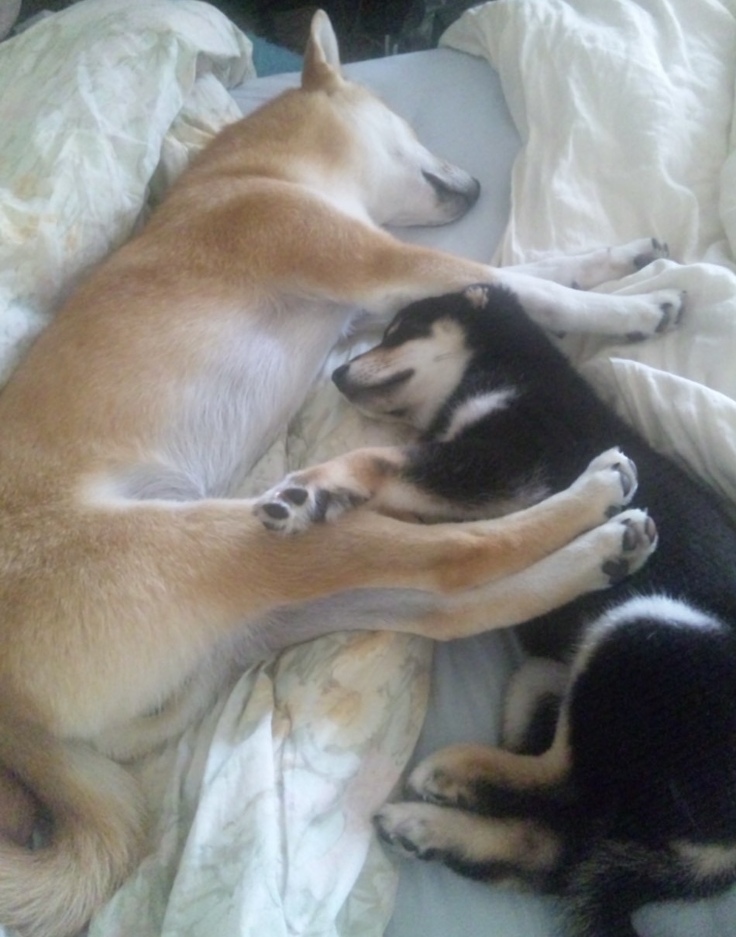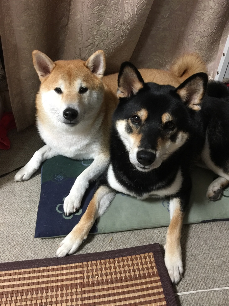 同居の3ヶ月先輩の柴犬のポチ(♂)と仲良しで、よくポチに対してお尻を上げて尻尾をフリフリしては、遊びに誘っています。