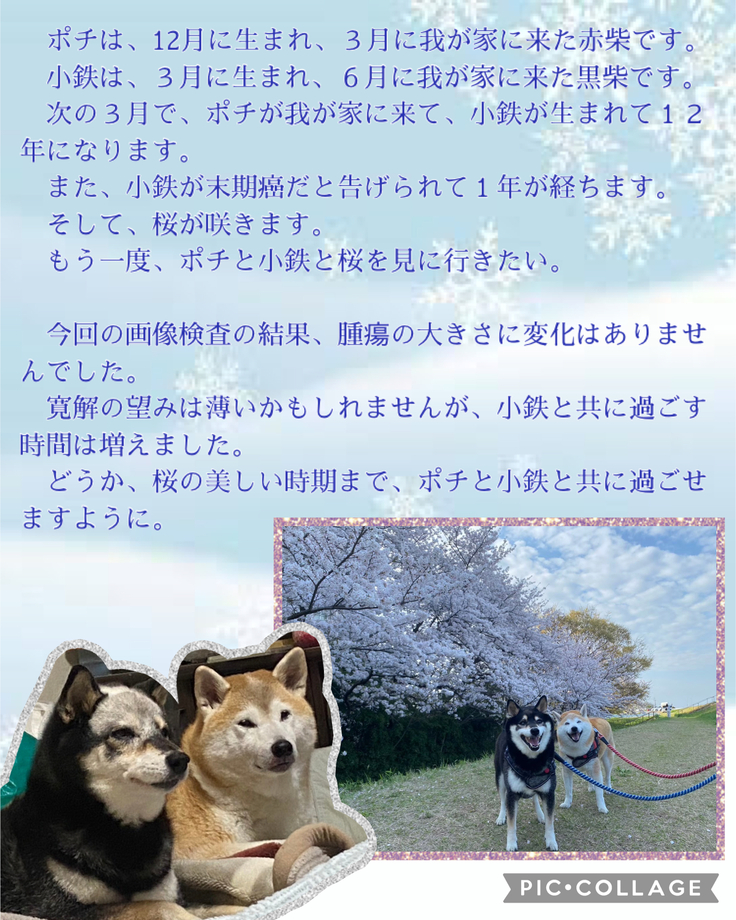 どこまで進行を遅らせることができるのかわからないが、小鉄の体力を鑑みて、抗がん剤の量を増やすことになった。